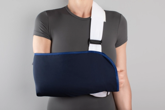 An alternative to taping, the purpose of which is to keep the shoulder immobile by securing the arm and forearm to the body in order to restore function in the context of treatment of a shoulder injury.