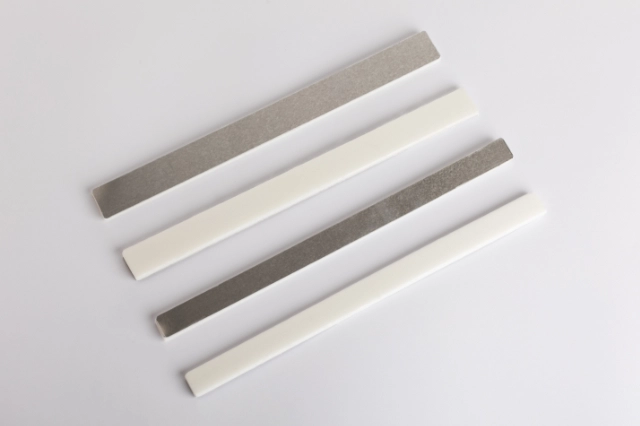 0.8 mm thick aluminium sheet, mouldable, and covered on one side with 8 mm thick polyethylene foam with adhesive. Non-traumatic edges, no sharp burrs.
