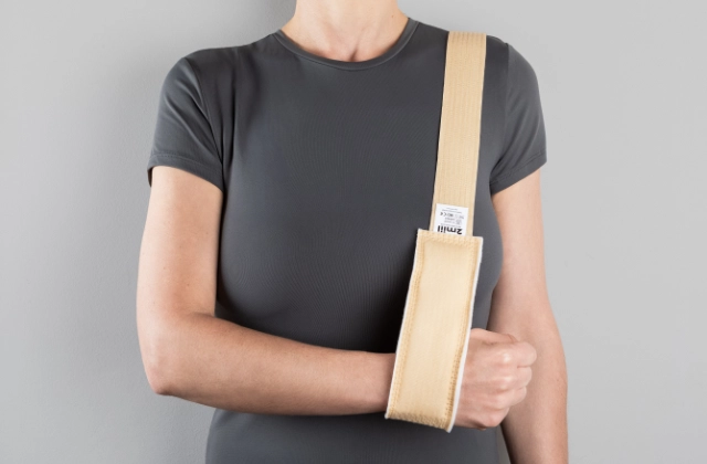 The 2miil postural sling-bandolier-cuff postural brace is designed to provide secure and comfortable support for immobilisation of the arm and wrist. This device is ideal for use in medical and rehabilitation settings, ensuring stable and effective support of the upper limb. The bandolier cuff design allows for balanced weight distribution, providing comfort to the patient during prolonged use. Made of high quality materials, the sling is durable and adapts to the specific needs of each patient, ensuring optimal recovery.