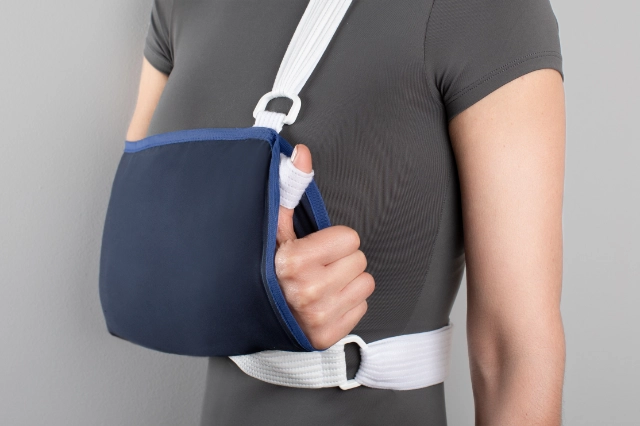An alternative to taping, the purpose of which is to keep the shoulder immobile by securing the arm and forearm to the body in order to restore function in the context of treatment of a shoulder injury.